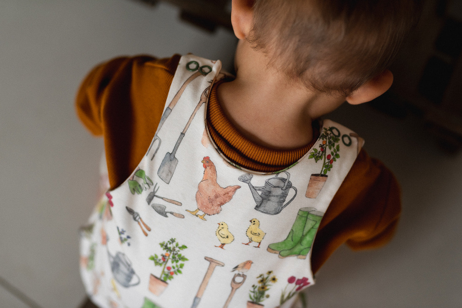 This easy-to-sew baby romper is suitable from newborn size and is designed to fit comfortably even over cloth nappies. The relaxed cut allows freedom of movement and makes this a quick and satisfying sewing project – even for beginners.